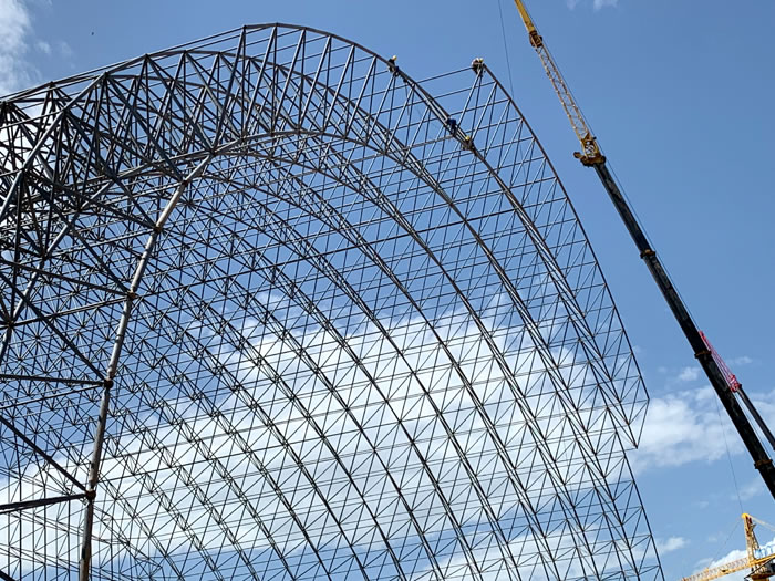 (2)网架加工前应对现场尺寸进行复测,确认无误后方可进行加工、安装;网架制作、运输、安装应遵守《空间网格结构技术规程》JGJ7-2010、《钢网架南阳螺栓球节点》JG/T 10-2009、《钢网架南阳螺栓球节点用高强度螺栓》 GB/T 16939-2016、《南阳钢结构南阳工程南阳施工规范》 GB50755-2012、《南阳钢结构南阳工程施工质量验收标准》 GB50205-2020。